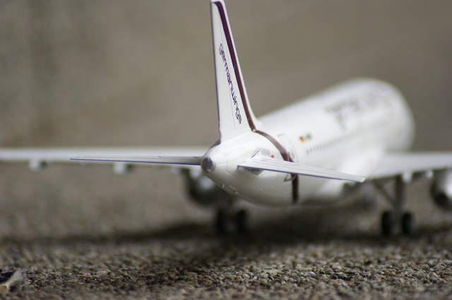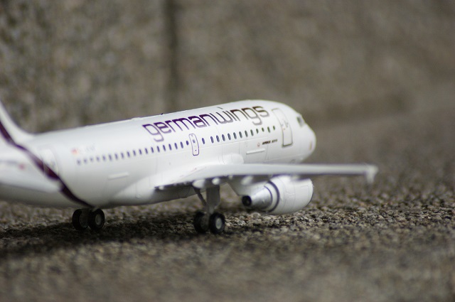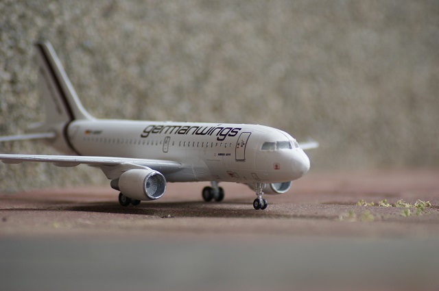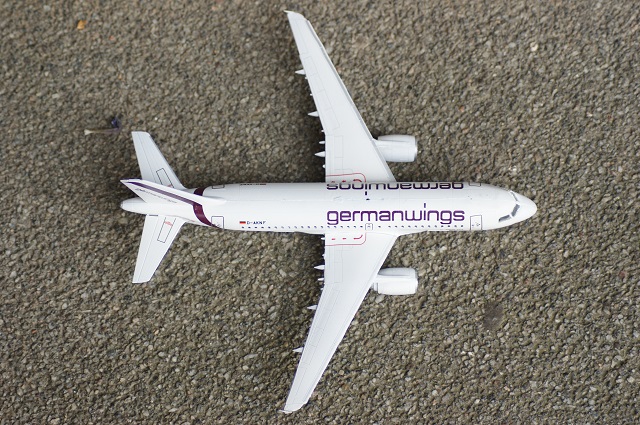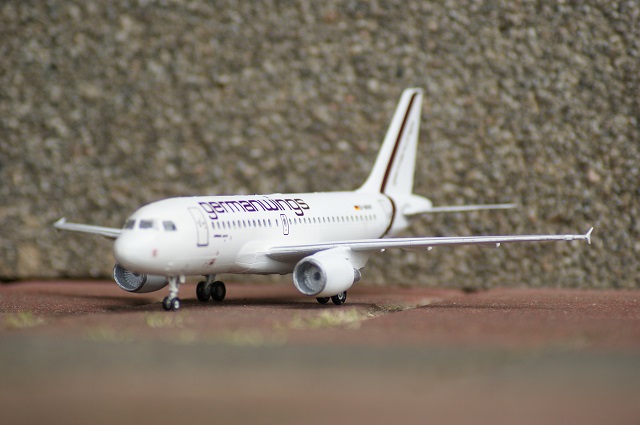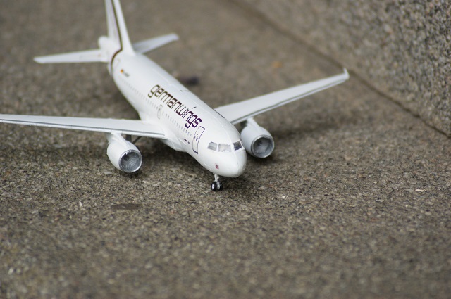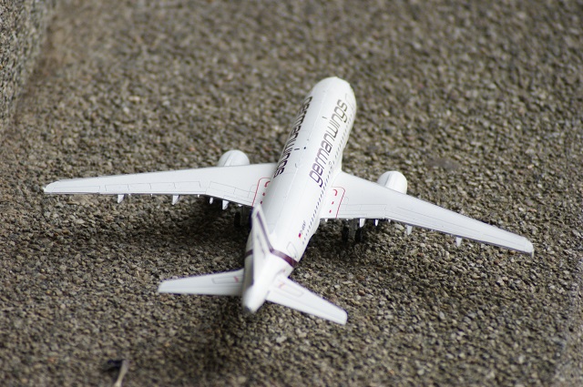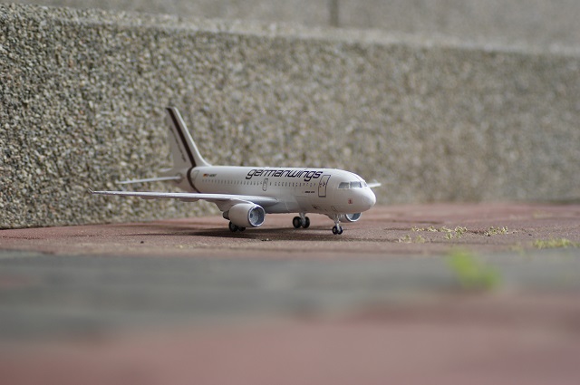 Der Airbus A-319 in den Farben von German Wings als Modell. Der Maßstab ist 1:144. Das Modell wurde auf einen Flohmarkt gekauft und war nicht vollständig. Einige Sachen mussten selbst hergestellt werden.