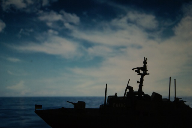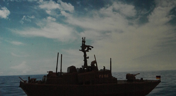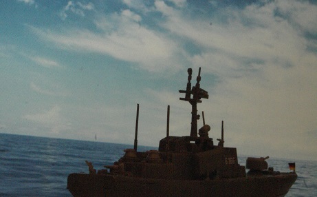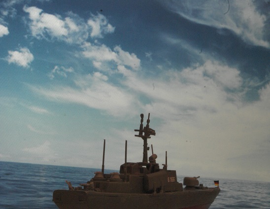 Hier ein kleines Raketenschiff der Tarantul-Klasse. Hierbei handelt es sich um die Raaketenkorvette Hiddensee, welche bis zum 22 April 1991 bei der Bundesmarine und danach bei der US Navy im Dienst war. Der Massstab ist 1:400.