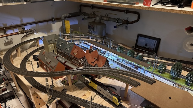 I decided to build a third level. It will get another train station, which will have two lanes. In the front area the plain will be built as a bridge, in the back area it will run onto a mountain. I have already built the front area and am now waiting for the missing rail material.
