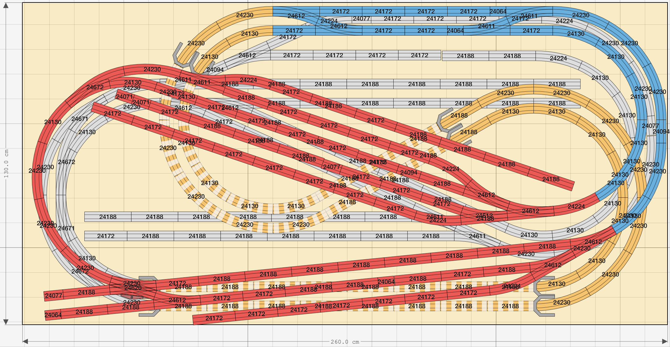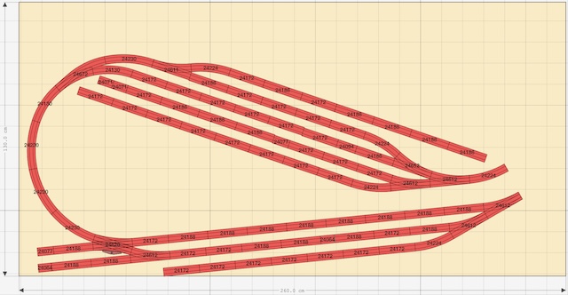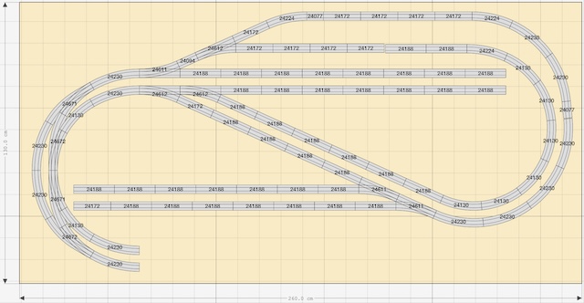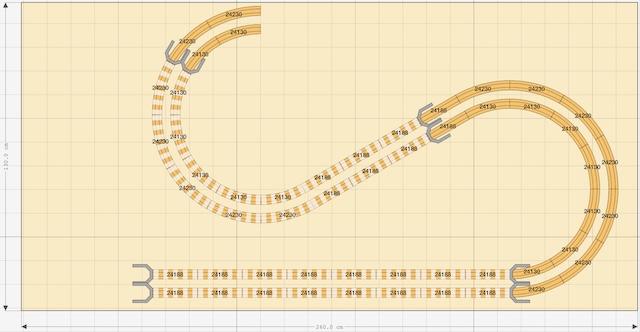 Since I realized that the chimney sweep couldn't get to the chimney because of my model railway system, the system was dismantled. It will not be possible to rebuild it in this position. Since I don't have any space, the things are now well packed and ready to be set up if a good solution is found. There is a plan of what the new facility should look like. It will have three levels with a shadow station, a double-track block line and a sack station. The space requirement is given as 2.60m x 1.30. The trains could be up to 1.80 m long. That's more than before. The track material is all there, the only thing missing is a suitable place. I hope I'll come up with a good solution soon.
